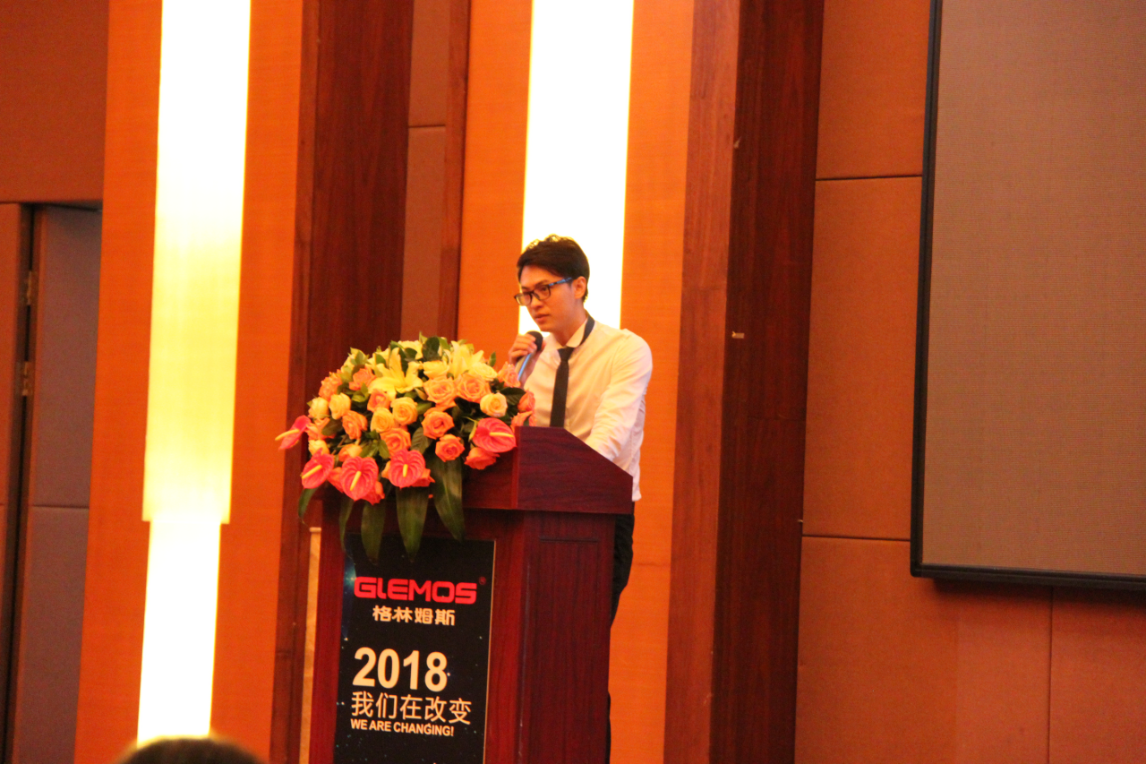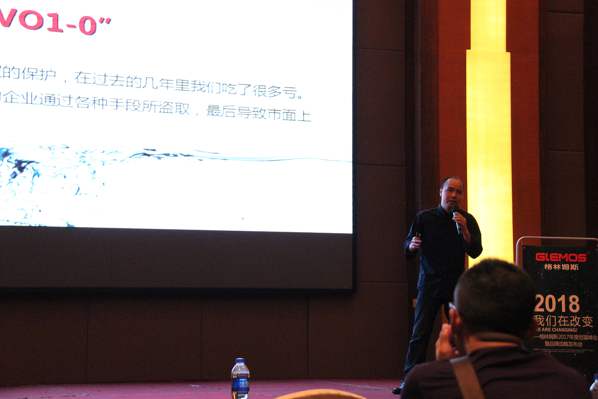 紧接着,广东格林姆斯电器有限公司市场总监何柏坚先生围绕格林姆斯2018年品牌策略发表了演讲。