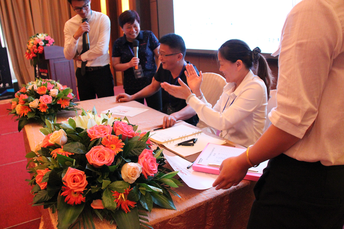 随后,广东格林姆斯电器有限公司市场总监何柏坚先生现场打款并宣读营销政策。