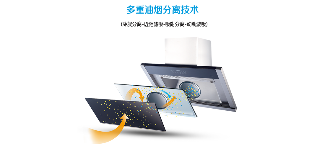 二、超大功率马达,配合低风阻干翼风轮。快速吸尽油烟。